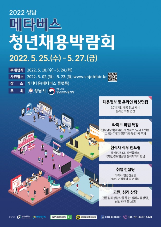 시는 구직자의 취업 성공을 돕기 위해 오는 18일부터 24일까지 메타버스 플랫폼에서 각종 부대행사를 연다. 이 기간 메타버스는 특강·컨설팅·심리상담 등 6개 존(Zone)이 마련된다.