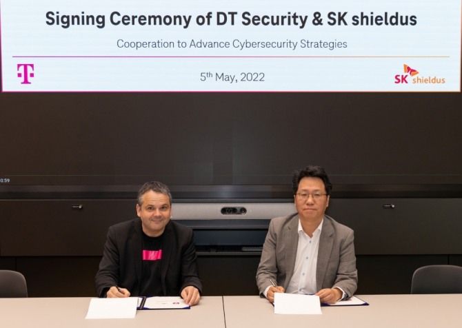 이미지 확대보기지난 5일 독일 현지에서 진행된 LOI 체결식에는 이용환 SK쉴더스 사업총괄과 토마스 췌르지히 도이치 텔레콤의 CSO 겸 도이치 텔레콤 시큐리티 CTO가 참석해 서명했다.