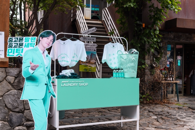 프리미엄 셀프빨래방으로 인기를 얻고 있는 워시엔조이는 '세탁'이라는 연결고리를 통해 이번 팝업스토어 기획에 참여했다. 양사 협업을 통해 '런드리 샵' 컨셉의 공간을 완성하고, 빨래방을 연상시키는 포토존도 마련했다.