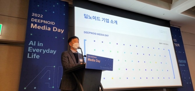 최우식 딥노이드 대표가 지난 3월 29일 서울 그랜드 인터컨티넨탈 서울 파르나스에서 열린 미디어데이에서 기업 소개를 하고 있다.  사진 = 딥노이드이미지 확대보기