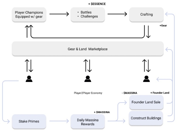 백서에 따르면 '챔피언스'에 활용되는 토큰은 이더리움(ETH)을 기반으로 하며, 공급 한도가 없다. 게임 내 기반 재화 역할을 하는 '에센스' 토큰과 캐릭터 NFT(대체불가능토큰) '프라임 이터널스', 그리고 '프라임 이터널스'를 스테이킹(가상 자산 예치_해 얻을 수 있는 전용 재화 '마시나', '다이아몬드' 토큰으로 경제 구조가 구성된다.