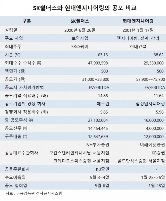 증권가에서는 SK쉴더스와 현대엔지니어링이 올해 공모에서 참패를 당한 데는 공모가격을 지나치게 부풀렸고 IPO를 이용해 구주를 매출하려는데 대해 투자자들이 곱지 않은 시선을 보냈기 때문으로 진단하고 있습니다.