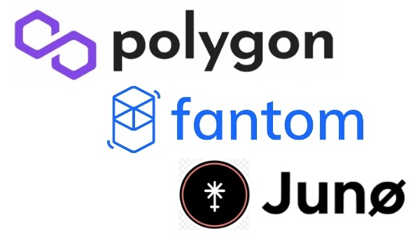 위부터 폴리곤(MATIC)·팬텀(FTM)·주노(JUNO) 로고. 사진=각 사