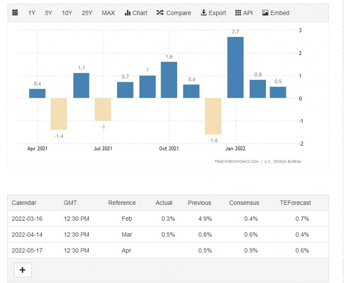 But with the Federal Reserve adopting an aggressive monetary policy stance to cool demand and bring down inflation, retail sales are expected to slow later this year. The U.S. central bank has increased its policy interest rate by 75 basis points since March. The Fed is expected to hike rates by half a percentage point at each of the next meetings in June and July.