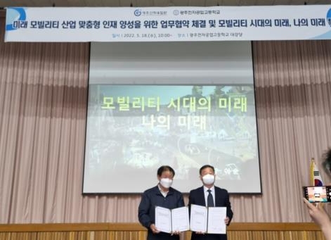 "미래형 인재를 육성하겠다."광주전자공업고등학교가 지난 18일 (사)광주산학융합원과 미래 모빌리티 산업 수요 맞춤형 전문인력 양성 및 취업 등의 프로그램을 효율적으로 운영하기 위한 업무협약을 체결했다.