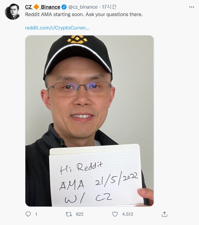 일반적으로 'CZ'로 알려져 있는 창펑 자오 CEO는 이날 새벽 레딧(Reddit)에서 투자 조언을 포함하여 다양한 주제에 대해 논의했다.