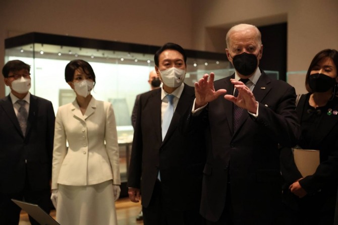 바이든, 윤 대통령에게 "우린 뛰어난 부인 얻은 행운아"