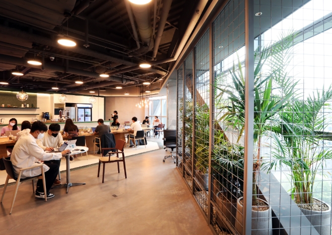 캠퍼스 시설도 관계사와 구성원 간 시너지를 극대화할 수 있도록 ‘공유’와 ‘자율’ 기조로 운영된다. 우선 구성원들이 활발히 교류할 수 있도록 보안상 필수 구역을 제외하고 모든 공간을 입주사 전체가 공유한다. 또한, 수평적인 소통 문화를 조성하기 위해 임원들의 고정 집무실을 없앴다.