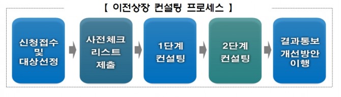 이전 상장 컨설팅은 기업공개(IPO) 경험이 풍부한 전문가가 코넥스 기업의 경영투명성과 기업계속성 전반을 사전에 점검하고, 미흡한 부분에 대해서 합리적인 개선 방안을 제시하는 방식이다. 즉 코넥스 기업이 향후 코스닥 상장 심사 준비에 만전을 기하도록 돕는 프로그램이다.