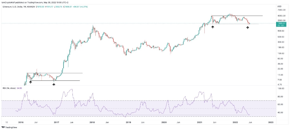 ETH/USD(달러) 주간 가격 차트. 출처=울프/트레이딩 뷰이미지 확대보기