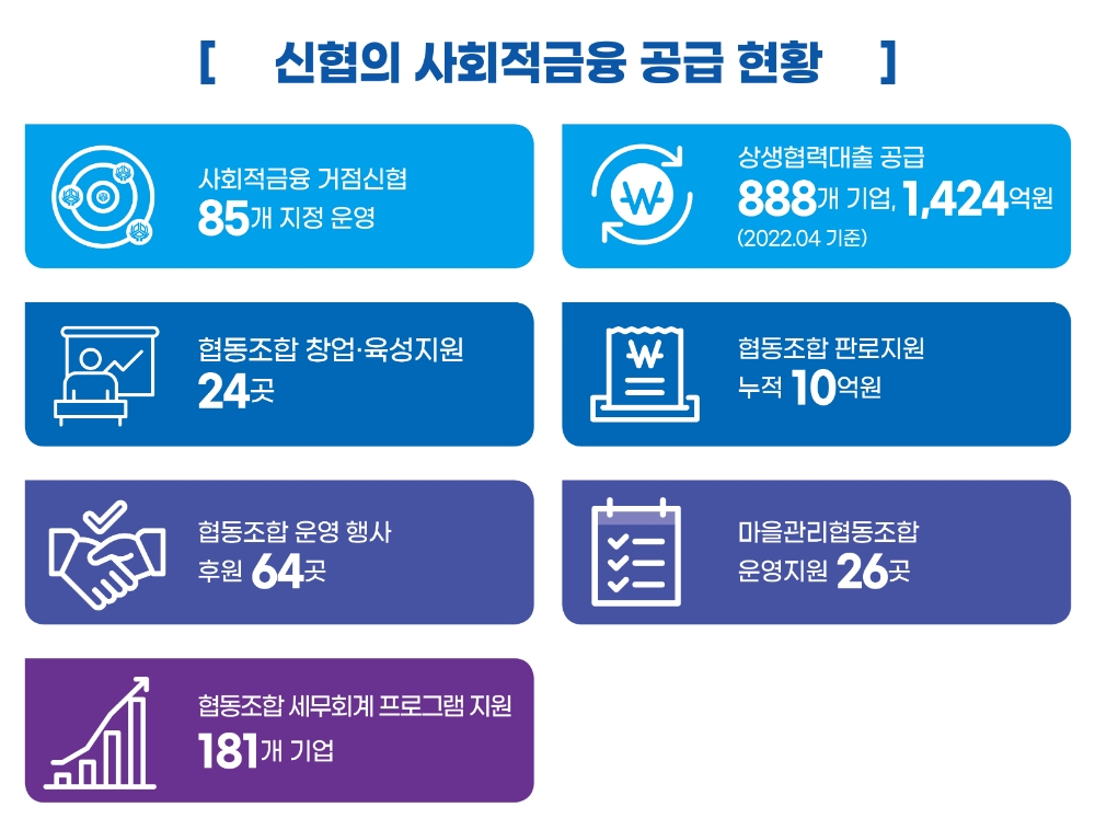 한편, 신협은 사회적금융사업 영역에서 지난 2016년부터 올해 4월까지 총 1424억원의 '신협 상생협력대출'을 공급하며, 더불어 잘사는 사회 건설과 지역사회와의 상생에 앞장서고 있다.