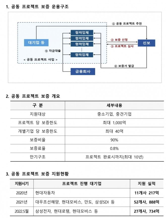 신보 관계자는 "현대모비스가 2년 연속 참여하고, 우리은행이 보증료 지원규모를 확대하는 등 신보의 공동 프로젝트 보증이 시장에서 좋은 반응을 얻고 있다"며 "앞으로도 신보는 대기업과 중소・중견기업의 동반성장을 뒷받침하는 혁신 프로젝트를 적극 발굴해 아낌없이 지원하겠다"고 말했다.