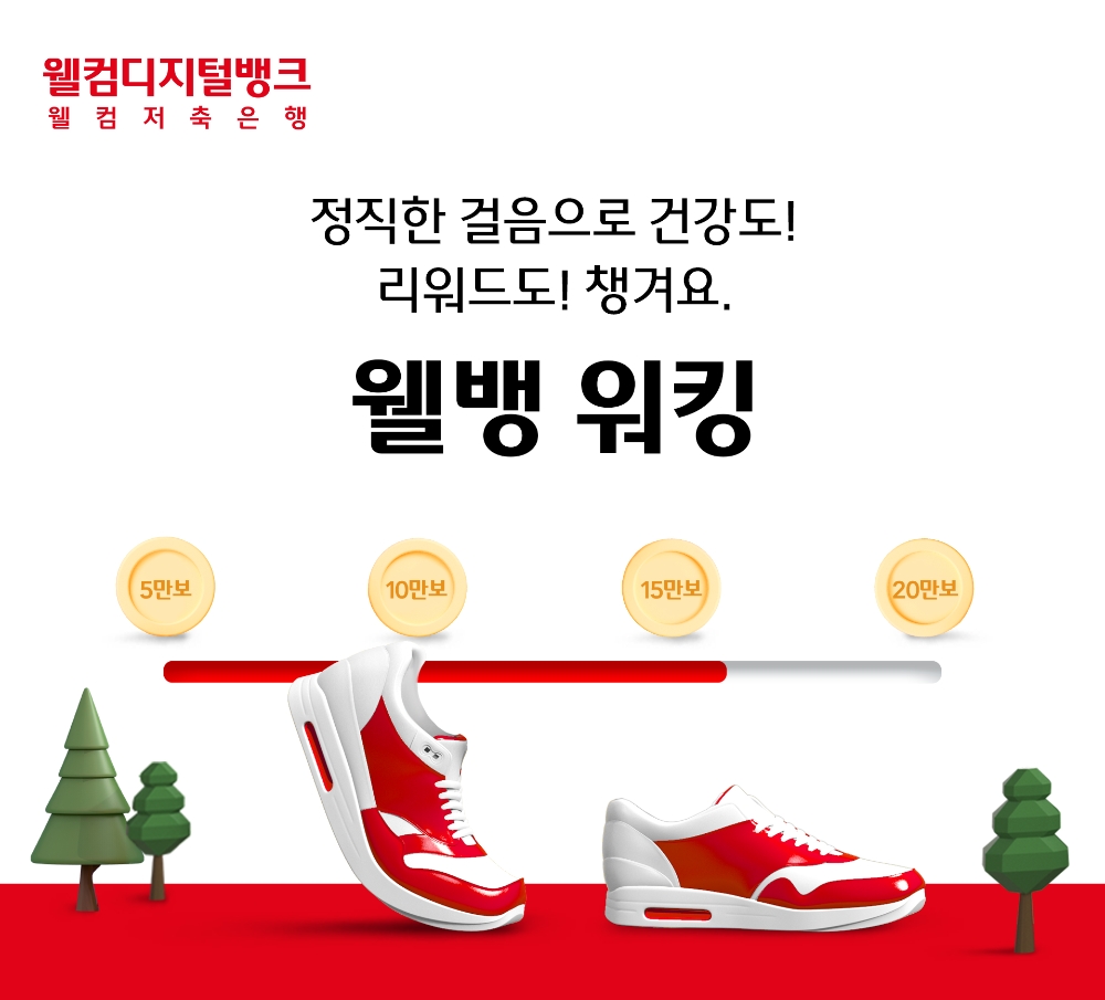 걷쥬와 연동, 대출 상품 이용 고객 대상 한달 20만보 이상 걸으면 최대 3000원 현금 리워드 제공