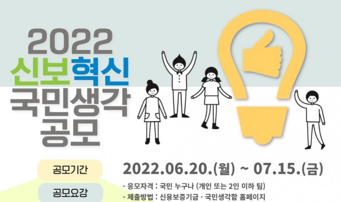 이미지 확대보기신용보증기금은 6월20일부터 7월15일까지 '신보혁신 국민생각 공모'를 진행한다고 20일 밝혔다.
