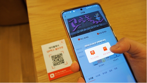 스마트상점 기술보급사업 우수사례 개별 소상공인 부문에서 ‘최우수상’에 선정된 ‘고인돌 가마참숯’에서 얍오더로 주문을 하고 있다. 사진=얍컴퍼니이미지 확대보기