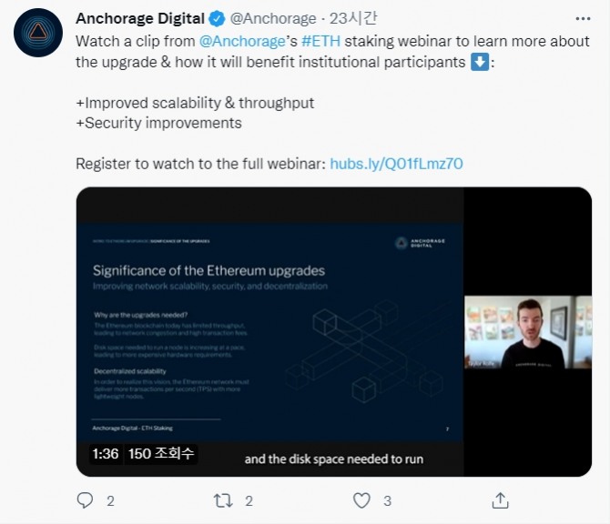 이번 발표는 메인넷과 비콘체인(Beacon Chain)이 조율한 PoS 시스템을 연결할 이더리움 네트워크 업그레이드에 대한 앵커리지의 높은 기대를 강조하고 있다. 이 기능을 통해 투자자는 앵커리지 검증인과 스테이킹해 보관 중인 ETH에 대한 보상을 받을 수 있다. 병합 후, 검증인은 블록 보상뿐만 아니라 이전에 채굴자에게 전달되었던 거래 우선 순위 수수료도 받게 된다.