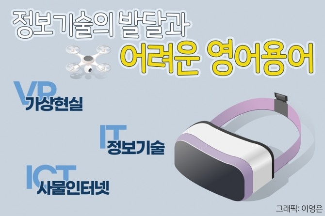 ICT(Information Communication Technology)는 정보기술에 ‘통신’이 들어갔다. ‘청년들의 열정과 첨단 ICT로 농촌이 바뀌어 간다’는 ‘청년들의 열정과 첨단 정보통신기술로 농촌이 ~’로 쓰면 된다. IOT(Internet of Things)는 더욱 발전한 기술 개념으로 ‘사물인터넷’이다. ‘돌봄과 IOT 기술을 결합한 디지털 돌봄 사업을 추진한다’는 돌봄과 사물인터넷 기술을 결합한~’이 바람직한 언어 사용이라고 할 수 있다. 정보기술의 발달은 VR(Virtual Reality)라는 새로운 영역을 만들어냈다. ‘게임하듯 VR로 실습하고 화상 수업한다’는 쉬운 우리말로 바꾸면 ‘게임하듯 가상현실로 실습하고~’이다.