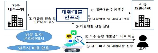 차주 이자 부담 경감을 위해 금융당국이 대환대출 플랫폼 추진의 움직임을 보이고 있다. 사진은 지난해 금융당국이 추진했던 대환대출플랫폼 모델 [자료=금융위원회]