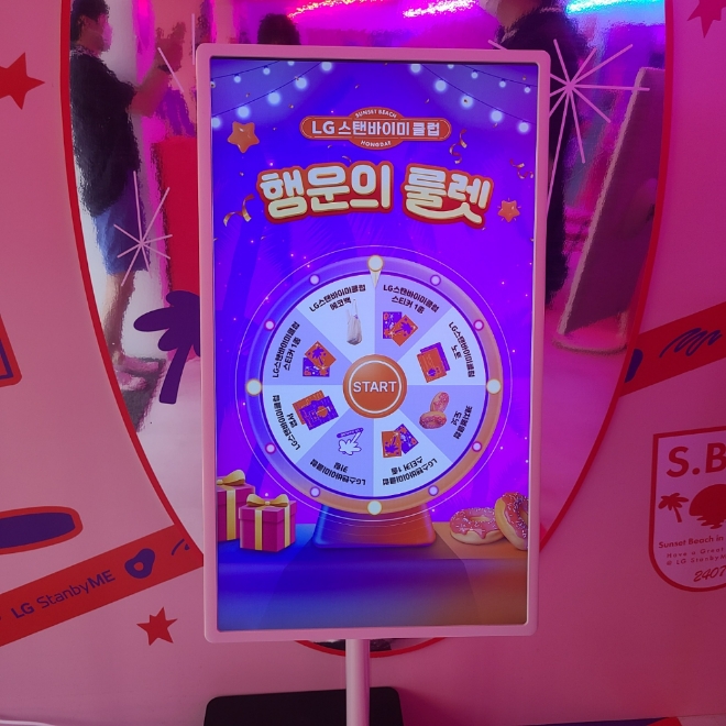 LG 스탠바이미 클럽 입구에서 할 수 있는 행운의 룰렛. 사진=정진주 기자이미지 확대보기