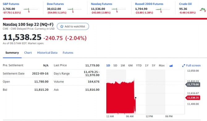 앞서 한국시간 13일 아침에 끝난 뉴욕증시는 기업들의 실적 발표를 주시하며, 다음날 예정된 소비자물가지수(CPI)에 대한 경계로 하락했다. 뉴욕증권거래소(NYSE)에서 다우존스30산업평균지수는 전장보다 192.51포인트(0.62%) 떨어진 30,981.33으로 거래를 마쳤다. 스탠더드앤드푸어스(S&P)500지수는 전장보다 35.63포인트(0.92%) 하락한 3,818.80으로, 기술주 중심의 나스닥 지수는 전장보다 107.87포인트(0.95%) 밀린 11,264.73으로 장을 마감했다.