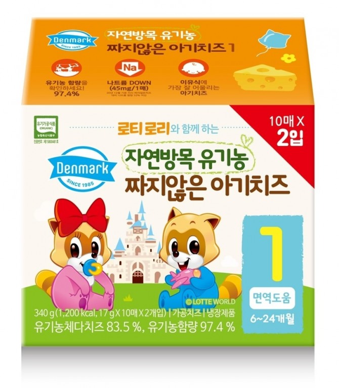 이번에 새롭게 출시된 '덴마크 로티로리 짜지않은 아기치즈'는 귀여운 캐릭터 패키지에 더해 365일 자연 방목한 건강한 소에서 얻은 원유로 만든 국내 최고 수준 유기농 함량(97.4%)의 유기농 아기치즈다.