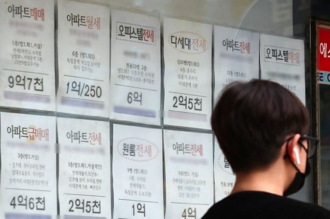 서울 시내 한 공인중개사 사무소에 매물 시세표가 붙어있다. 사진=뉴시스이미지 확대보기