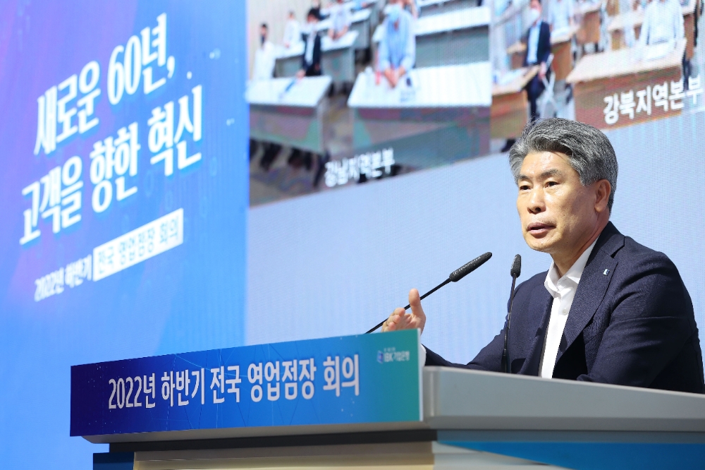 한편 이날 회의에서는 경영성과 우수 영업점에 대한 시상식과 IBK혁신경영의 성과를 공유하고 '세대공감' 영상을 통해 직원 간 소통과 이해의 필요성을 공감하는 시간을 가졌다.