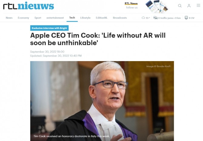 쿡 CEO는 RTL뉴스와 인터뷰에서 메타버스와 가상현실을 분명히 구분해야 한다고 강조했다.