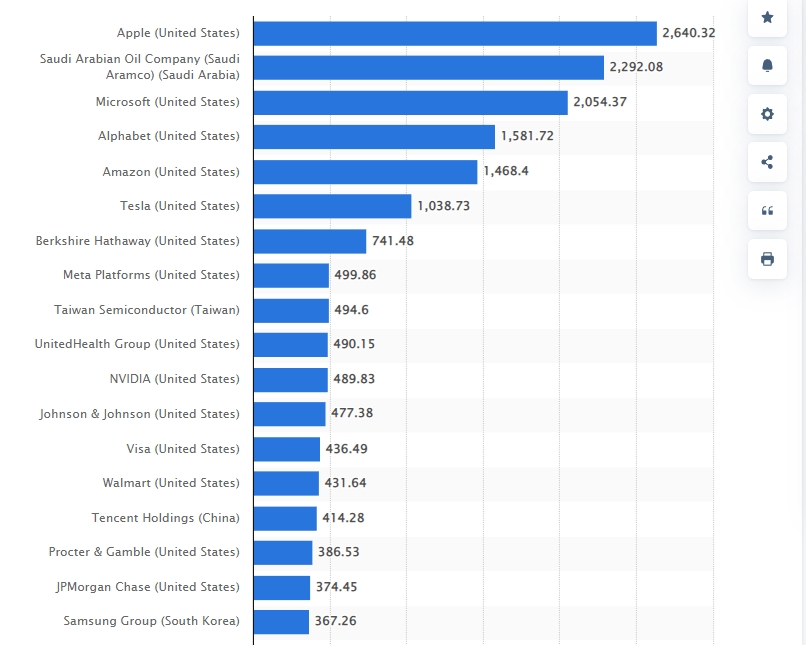 시가총액 기준 올해 글로벌 기업 순위. 사진=스태티스타