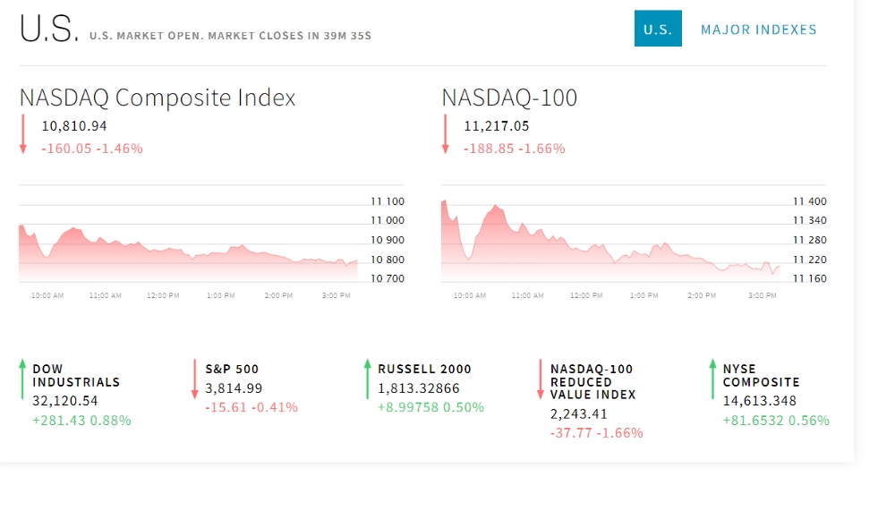 이미지 확대보기28일 뉴욕증권거래소(NYSE)에 따르면 다우존스30산업평균지수는 상승세다. 스탠더드앤드푸어스(S&P)500지수와 기술주 중심의 나스닥 지수는 하락하고 있다. 나스닥지수가 페이스북 모기업 메타의 주가 하락에 하락세로 전환됐다. 미국의 3분기 GDP 성장률은 전기대비 연율 2.6%로 잠정 집계됐다. 앞선 두 개 분기 동안 마이너스(-)를 기록했던 미국 성장률이 플러스로 전환됐다. 미국의 1분기와 2분기 GDP 성장률은 각각 -1.6%, -0.6%를 기록해 기술적 침체를 나타낸 바 있다. 주간 실업보험 청구자 수는 계절 조정 기준으로 전주보다 3천 명 증가한 21만7천 명으로 집계됐다. 이는 뉴욕증시 전문가 예상치 22만 명에 살짝 못 미치는 수준이다. 과열된 노동시장이 연준의 공격적인 금리 인상으로 진정되고 있다는 신호로 풀이된다. 페이스북 모기업인 메타는 예상치를 밑도는 3분기 순이익을 발표했다. 장 마감 후 인텔과 아마존, 애플, 티모바일 등이 분기 실적을 발표할 예정이다.