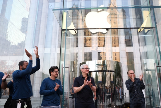 타임 쿡 애플 최고경영자(CEO)가 뉴욕 맨해튼에서 아이폰 14 제품군 출시를 위해 애플 5번가 매장 밖에 서 있다. 사진=로이터이미지 확대보기
