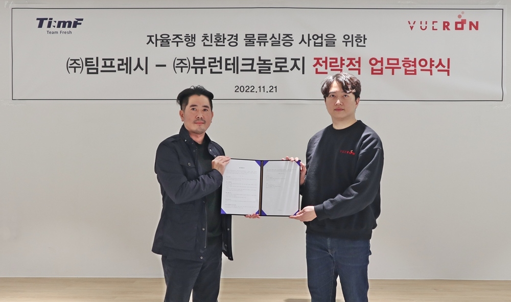 뷰런테크놀로지와 함께 친환경 자율주행 배송 사업을 진행할 팀프레시는 수도권 중심의 콜드체인 새벽배송에서 90%가 넘는 점유율을 자랑한다. 양사는 뷰런테크놀로지의 라이다 기반 자율주행 솔루션이 탑재된 전기 트럭을 활용해 팀프레시의 신선 식자재 배송을 친환경적으로 수행하는 공동 사업을 진행할 계획이다.