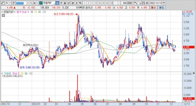 무림P&P의 지난 1년여간 주가 변동 추이. 키움증권 HTS 캡처이미지 확대보기