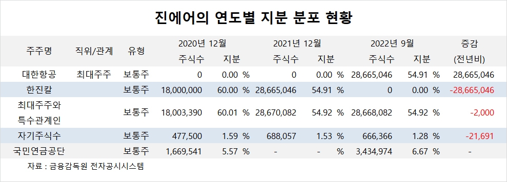 이미지 확대보기진에어의 최대주주는 대한항공으로 지분 54.91%를 보유하고 있습니다.