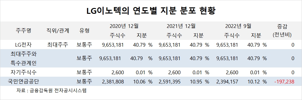 이미지 확대보기LG이노텍의 최대주주는 LG전자로 지분 40.79%를 보유하고 있습니다.