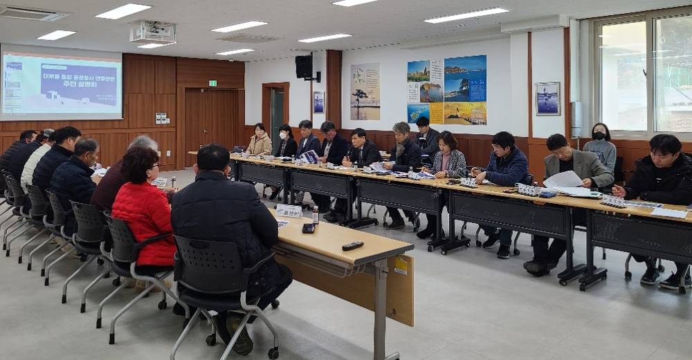 이미지 확대보기이번 설명회는 대부동 10개 직능단체장과 전덕주 시 행정안전국장을 비롯한 관련 공무원 등이 참석한 가운데 ▲청사건립 추진방향 ▲건립 대상지 ▲주민편의시설 등 청사 구성안 ▲지역주민협의체 구성 및 운영 등 다양한 방안이 논의됐다.