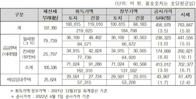 이번에 공개한 자산내역의 취득가액 및 장부가액은 2021년도 12월말 기준 회계결산 금액이며, 공시가격은 2022년도 6월 1일 기준 금액이다.