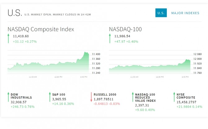 뉴욕증시는 장 막판 반발매수세의 폭발로 다시 오르고 있다.