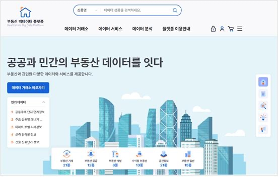 이미지 확대보기부동산 빅데이터 플랫폼 구축은 과학기술정보통신부와 한국지능정보사회진흥원이 주관하는 사업으로 국민과 기업이 활용할 수 있는 양질의 부동산 데이터를 개방하는 것을 목적으로 한다.