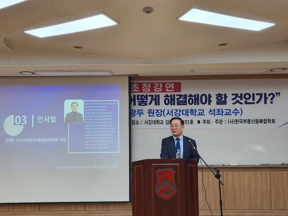 이미지 확대보기전날 서울 마포구 서강대학교 김대건관에서 진행된 이번 세미나에서는 '경제 상황에 따른 부동산산업 대응전략' 주제로 국내외 불확실한 경제상황에 대한 위기 극복 방안이 다뤄졌다.