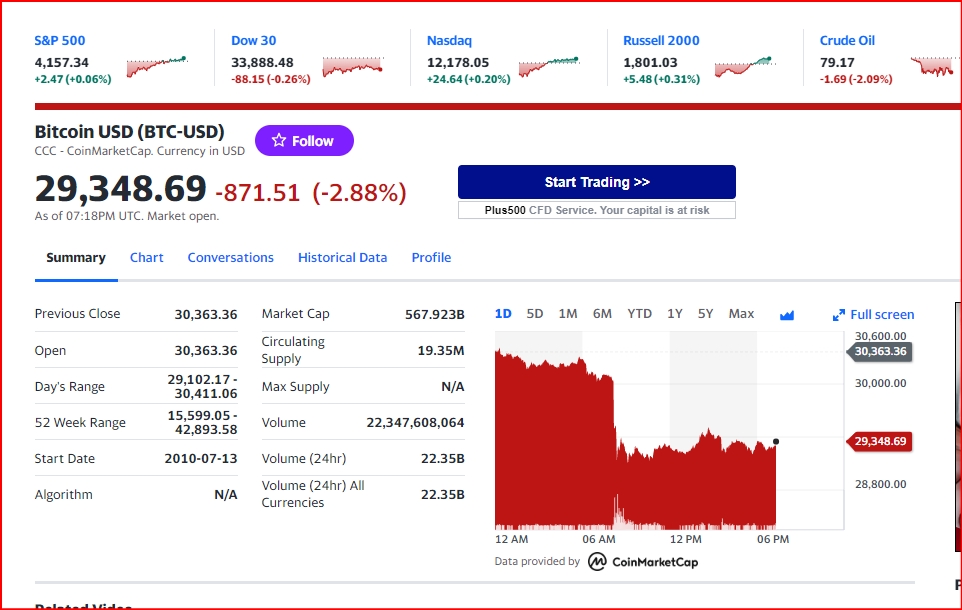 20일 뉴욕증시에 따르면 비트코인 이더리움 리플 등 가상화폐는 큰 폭으로 떨어지고 있다. 뉴욕증권거래소(NYSE)에서 다우존스30산업평균지수는 상승세다. 반면 스탠더드앤드푸어스(S&P)500지수와 나스닥지수는 밀리고 있다.