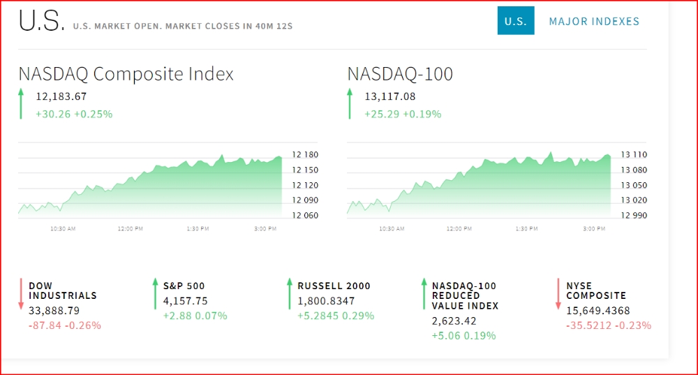 연준은 경기 평가 보고서인 베이지북을 발표한다. 뉴욕증시 마감 후 존 윌리엄스 뉴욕 연방준비은행 총재의 연설이 예정돼 있다. 뉴욕증시 S&P500지수 내 통신, 에너지, 기술, 임의소비재 관련주가 하락하고, 유틸리티, 헬스 관련주는 올랐다. 파산 우려가 계속되고 있는 베드배스앤드비욘드의 주가는 급등 중이다.