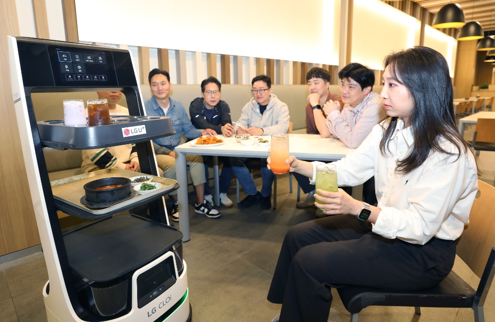 이미지 확대보기'U+서빙로봇'은 LG전자 로봇 클로이를 활용해 매장 운영효율을 높이고 소상공인과 요식업 점주 등 소호 고객 경험혁신을 위해 출시한 서비스다. 경로를 설정해두면 클로이 로봇이 AI와 카메라로 장애물을 피해 음식과 물건을 안전하게 배송한다.