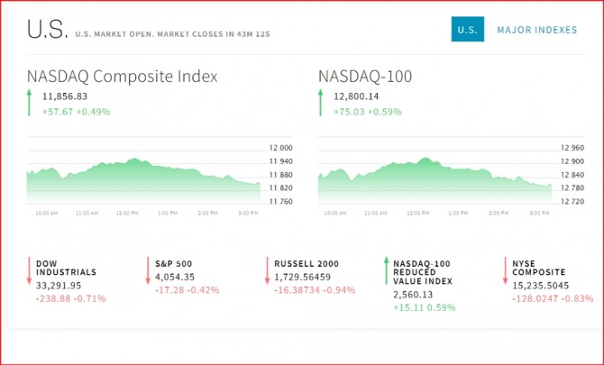 미국 뉴욕증시 나스닥 다우지수 및 비트코인 시세이미지 확대보기