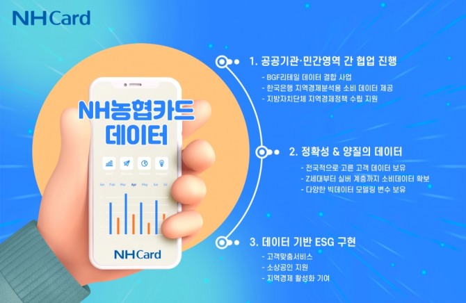 NH농협카드가 지난 4월 BGF리테일과 빅데이터 협력 협약을 체결했으며, 기존 세종시·한국은행 등 공공 영역은 론 민간 영역에서도 데이터 사업 협력 역량을 강화한다고 17일 밝혔다.