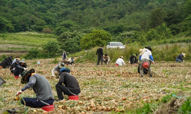 마늘·양파 등 농산물 수확 힘 보태며 통합분위기 이어나가