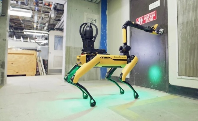 ‘스팟’은 전용 팔 덕분에 인간의 도움 없이 혼자 문을 열 수 있다. 이 팔은 손잡이, 도구 및 밸브 등 다양한 물체를 잡고 올리고 놓고 끌 수 있다.