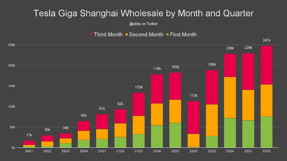 테슬라 기가팩토리3의 분기별 출하량 추이. 사진=트위터