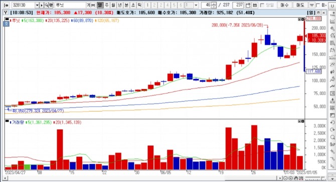이미지 확대보기5일 한국거래소에 따르면, 루닛 주가는 이날 오전 9시 39분 현재 전 거래일 대비 8.57% 상승한 18만2400원에 거래되고 있다.
