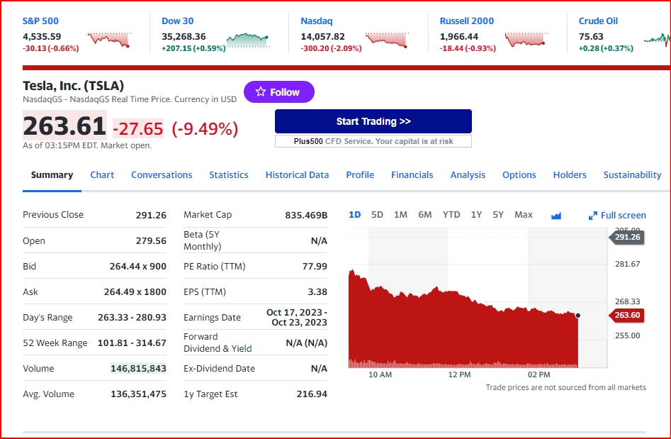 이미지 확대보기21일 뉴욕증시에 따르면 테슬라는 예상치를 웃도는 분기 순이익과 매출을 발표했으나 마진 축소로 매출총이익률과 영업이익률이 하락하면서 주가가 9%이상 하락 중이다. 넷플릭스도 예상치를 밑도는 매출을 발표하면서 주가가 급락하고 있다. 뉴욕증권거래소(NYSE)에서 다우존스30산업평균지수는 소폭 오르고 있으나 스탠더드앤드푸어스(S&P)500지수와 나스닥지수는 급락하고 있다.